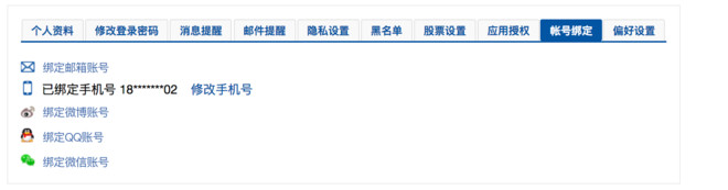 管理雪球帐号可以绑定微信,QQ和微博账号
