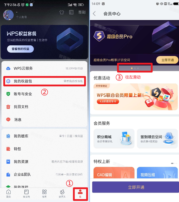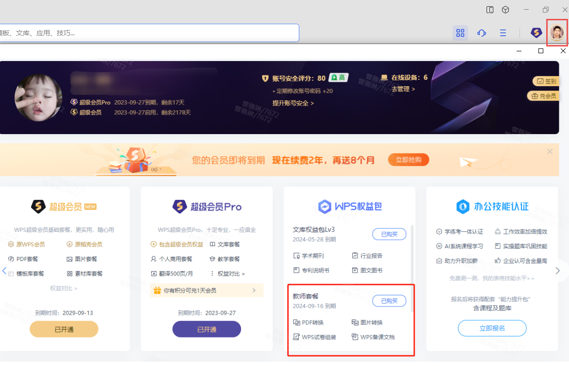 本次活动发放福利分为超级会员和教师套餐。超级会员到账情况可在电脑端WPS-点击右上角头像-个人中心页面查看+手机端个人中心页面查看教师套餐到账情况