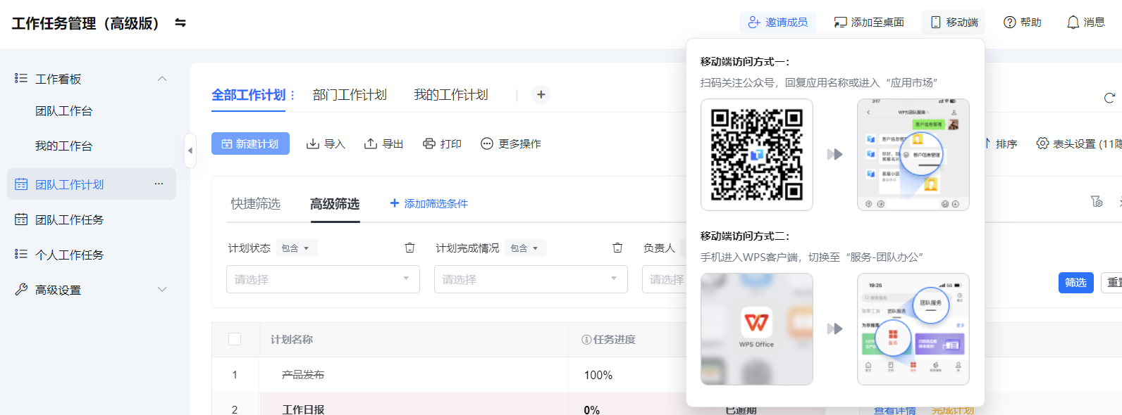 2、移动端可通过点击应用右上角的移动端,根据提示进行操作即可